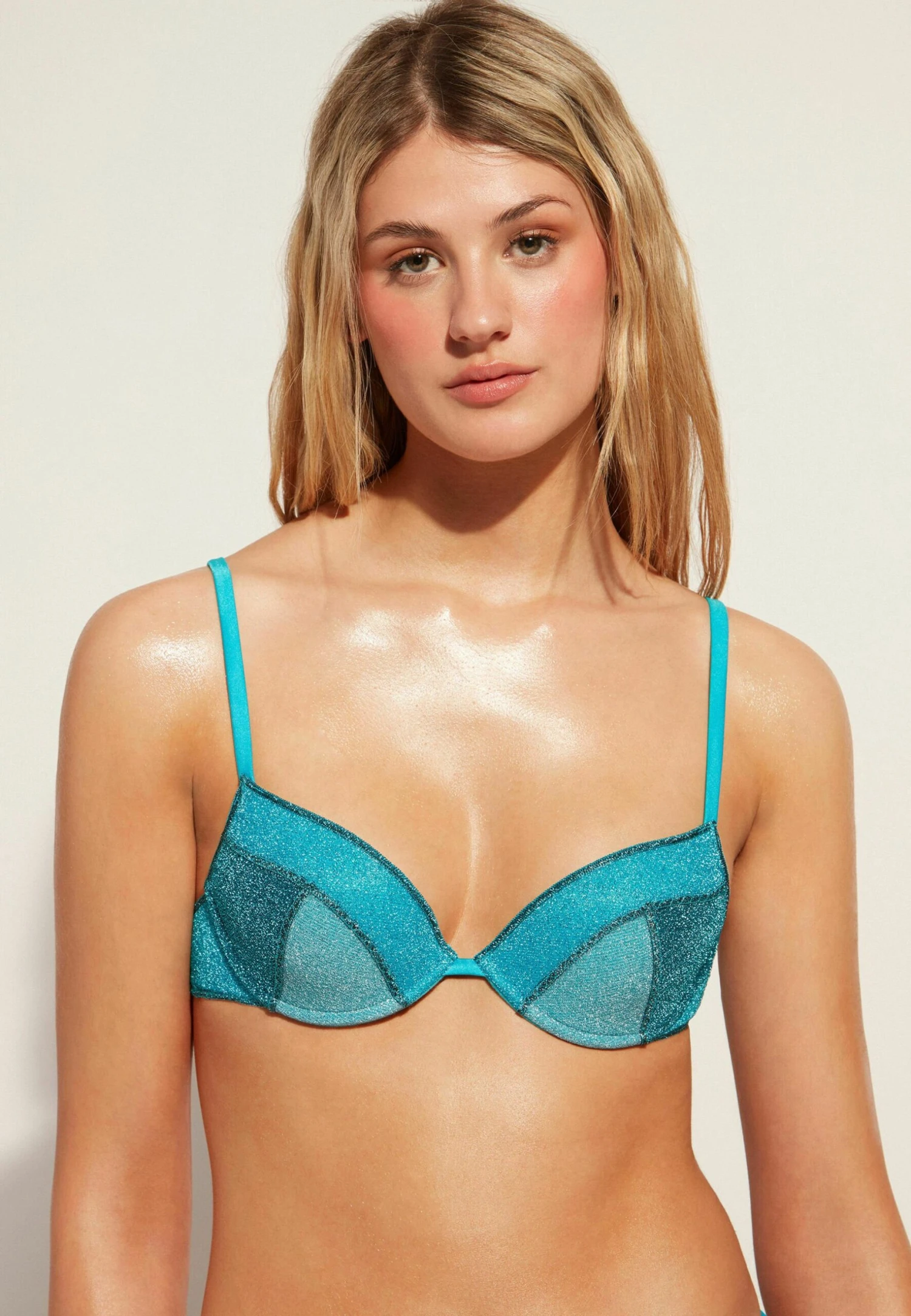 Calzedonia Lisbona Padded – Top De Bikini – Blau/Turquoise Green Patchwork