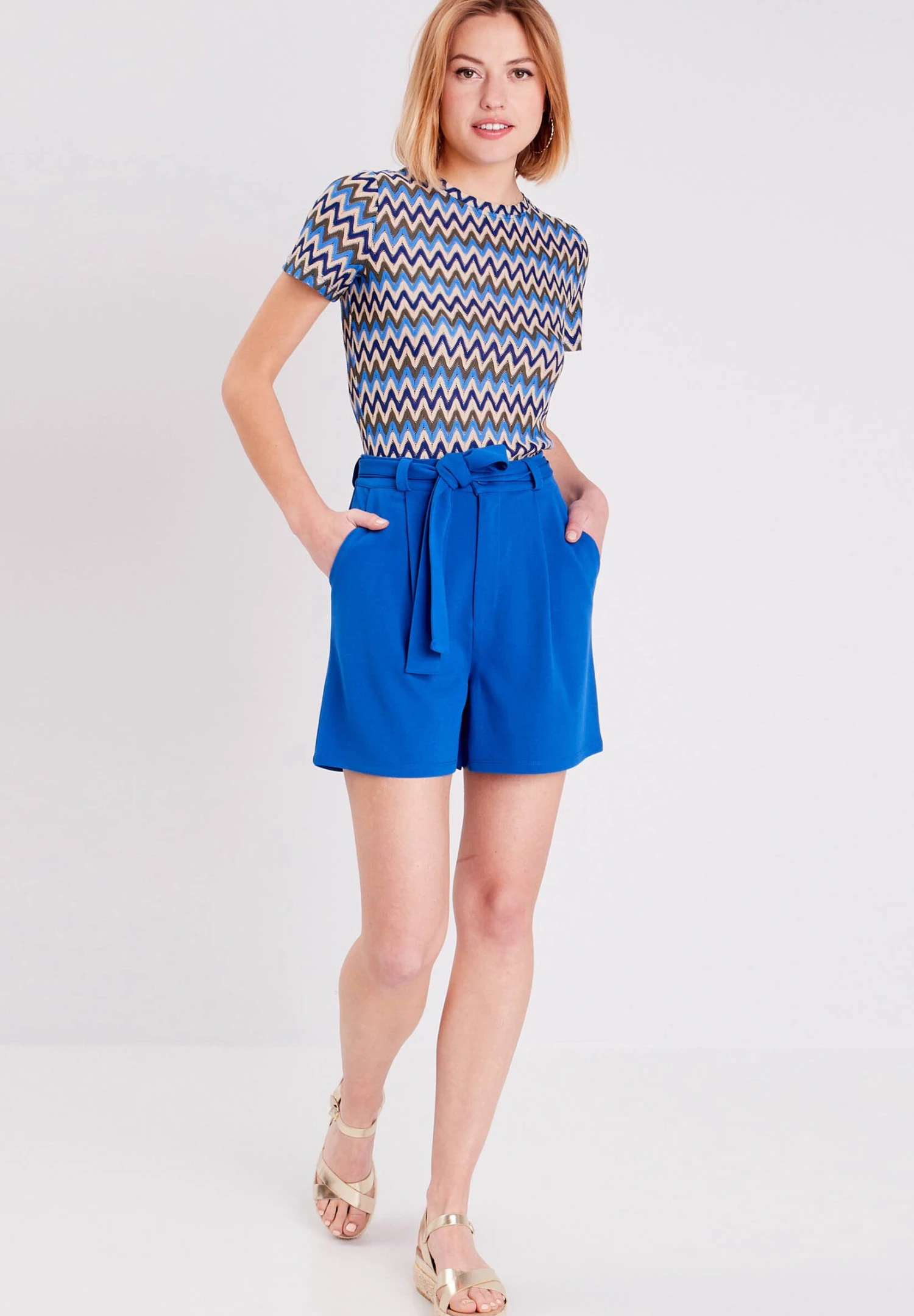 Gerade Geschnittene Mit Gürtel – Shorts – Bleu Roi