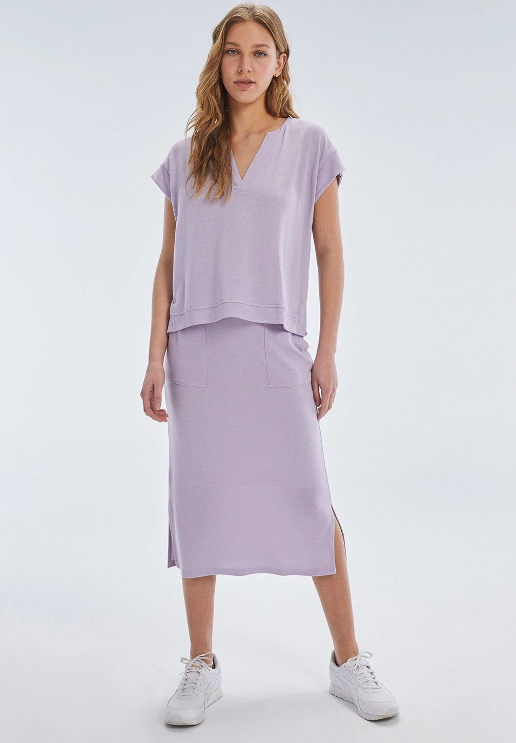 Midi Con Bolsillos – Falda De Tubo – Lila