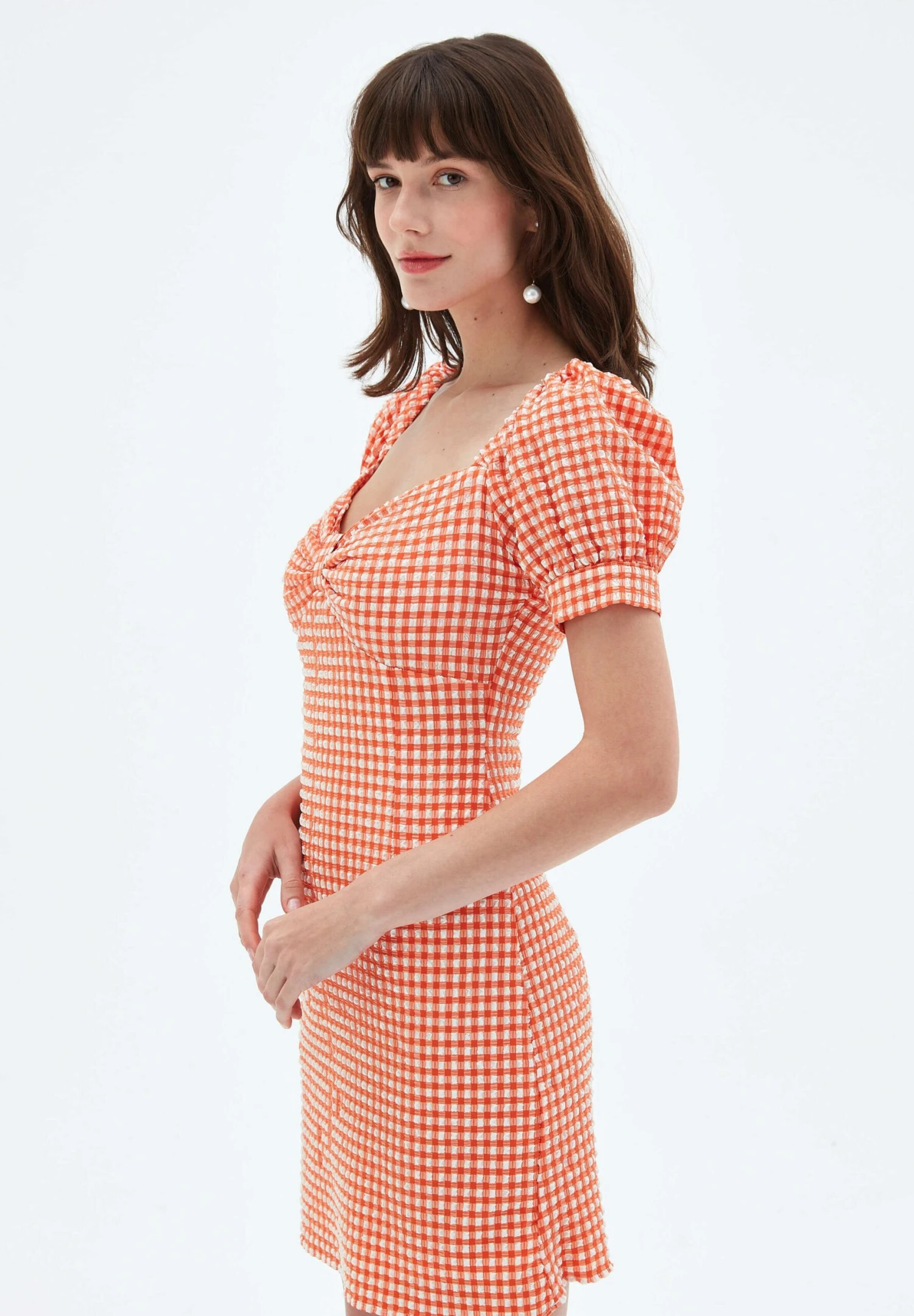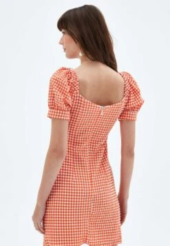 Short Balloon Sleeve – Vestido De Tubo – Plaid Coral